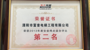 溧陽市富奎電梯工程有限公司 溧陽市富奎電梯工程有限公司是于二OO八年一月九日在原前身溧陽市電梯工程公司基礎(chǔ)上成立的,是專業(yè)從事電梯銷售安裝維修、保養(yǎng)的企業(yè)。是國家質(zhì)監(jiān)總局頒發(fā)的特種設(shè)備安裝、改造、維修A級安裝許可證單位。公司組織機(jī)構(gòu)實(shí)行總經(jīng)理負(fù)責(zé)制,公司下設(shè)管理部、銷售部、安裝維修部、質(zhì)安部、財(cái)務(wù)部,公司另外設(shè)十二個分公司:四川分公司、江蘇分公司、上海分公司、浙江分公司、湖南分公司、遼寧分公司、山東分...